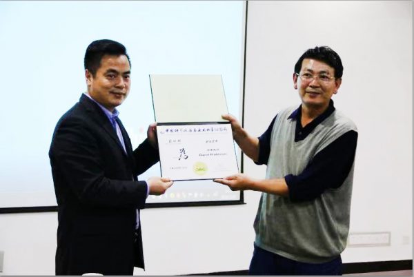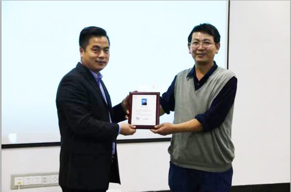 2018年11月9日,浙江大学求是特聘教授、爱丁堡大学荣誉教授、浙江大学-爱丁堡大学联合学院院长,浙江大学医学院副院长欧阳宏伟应邀访问长春应化所,并做客中国科学院长春应用化学研究所”应用化学系列讲座”,作了题为”再生医学转化研究探索与思考”的精彩报告。再生医学材料课题组组长章培标研究员主持了报告会,并为欧阳宏伟教授颁发了讲座纪念牌和长春应化所客座教授的聘任证书。